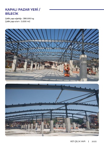 KAPALI PAZAR YERİ / BİLECİK Çel k yapı ağırlığı : 380.000 kg Çel k yapı alanı : 5.000 m2 VET ÇELİK YAPI 2025