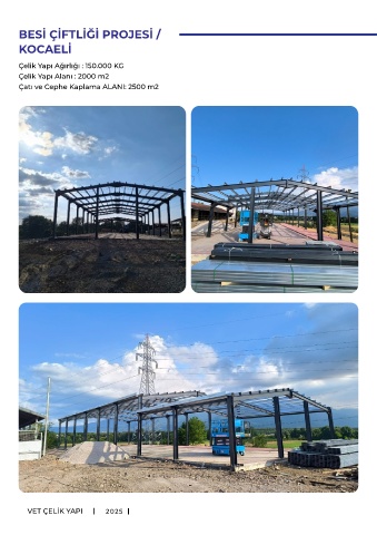 BESİ ÇİFTLİĞİ PROJESİ / KOCAELİ Çel k Yapı Ağırlığı : 150.000 KG Çel k Yapı Alanı : 2000 m2 Çatı ve Cephe Kaplama ALANI: 2500 m2 VET ÇELİK YAPI 2025